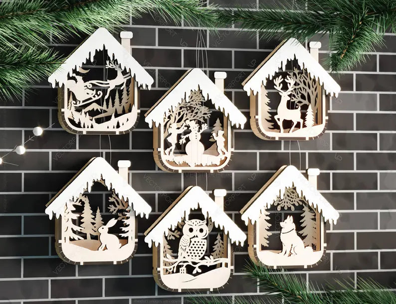 Ovaj set od 6 unikatnih ukrasa u obliku kućica savršeno kombinuje prirodno drvo, skandinavski dizajn i ručni rad – prava mala praznična čarolija! ✨